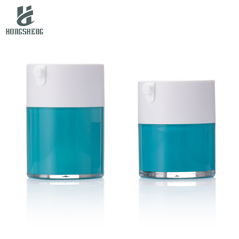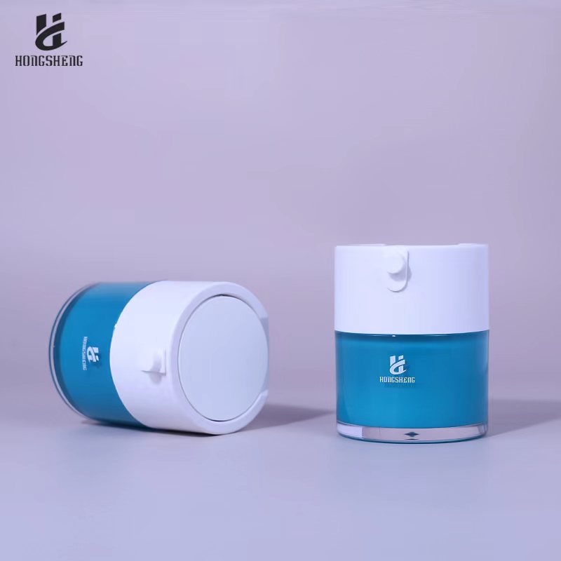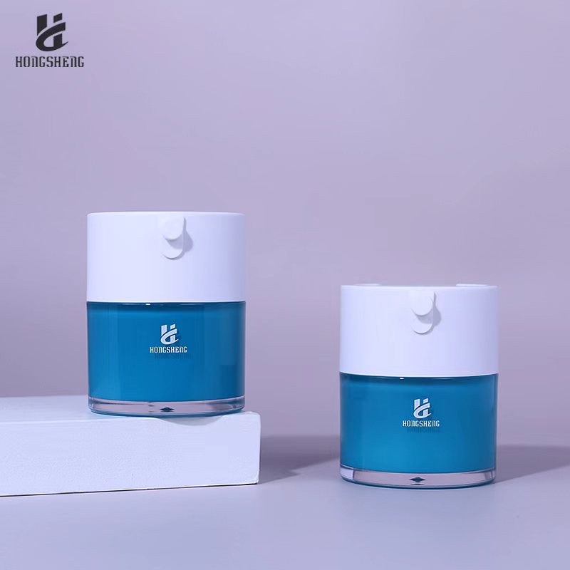 Inom området funktionella hudvårdsprodukter och lyxig skönhet påverkar förseglings- och användningsupplevelsen av vakuumpumpflaskor direkt bevarandeeffekten av aktiva ingredienser i produkter och konsumentupplevelsen. HS-036 Blue 30G 1oz Plast Akryl Kosmetikburk Krämbehållare Plast Serumburk För Kosmetika Och Hudvård har blivit en idealisk förpackningslösning för avancerade produkter som essensoljor, ampuller och högkoncentrerade essenser med sin dubbelskiktiga läcktäta struktur, breda kaliberdesign och exakta vakuumkonserveringsteknik.